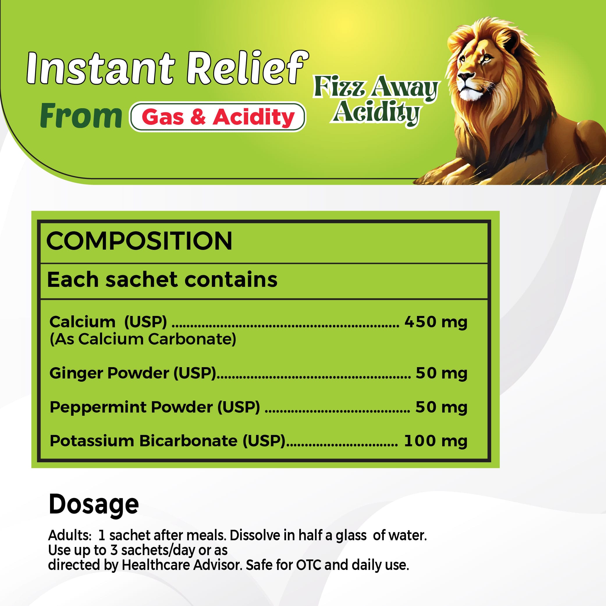 Each sachet contains calcium as calcium carbonate along with ginger powder peppermint powder and potassium bicarbonate which work together to neutralize stomach acid and support digestive comfort naturally and gently - How does Zinga Sachet work?