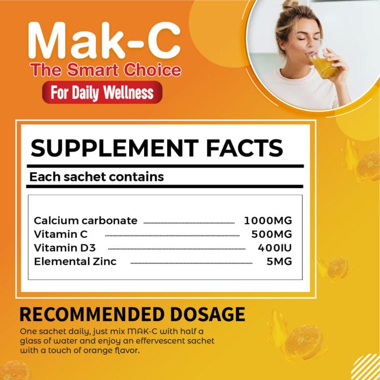 MAK C Sachets combine Calcium, Vitamin C, and Vitamin D3...